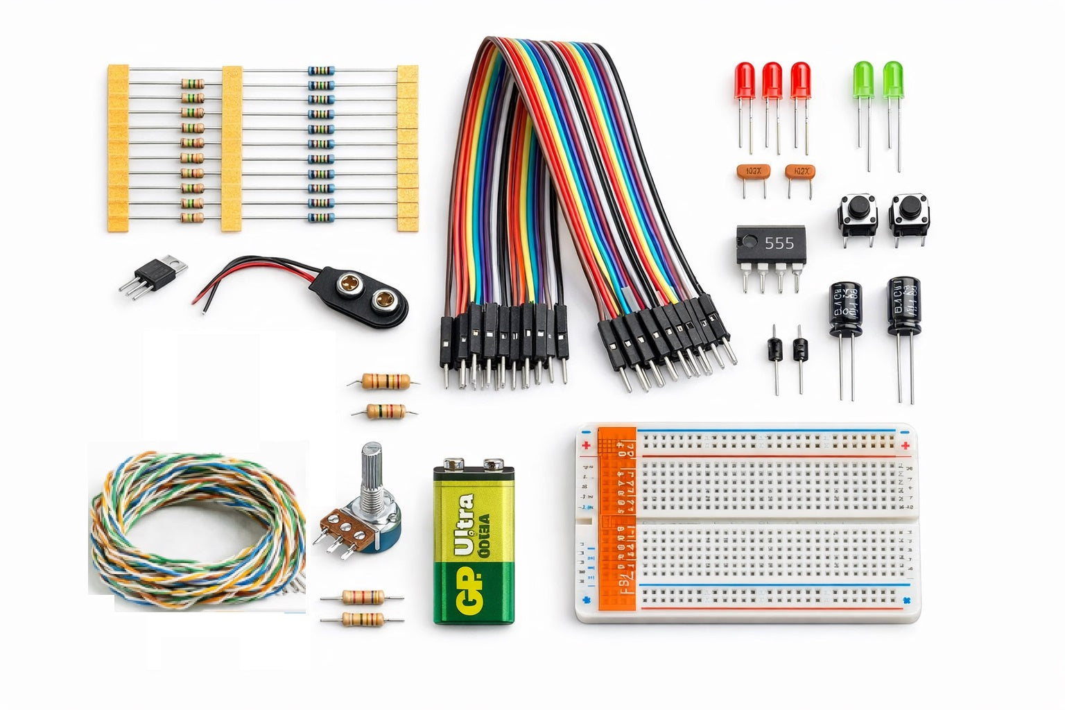 Componentes electrónicos con los cuales podrás interactuar y aprender haciendo diferentes tipos de pruebas y proyectos.